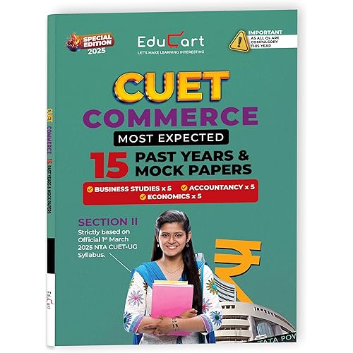 Educart 15 CUET UG Entrance Exam Books 2025 Commerce Stream Combined Past Years & Mock Papers