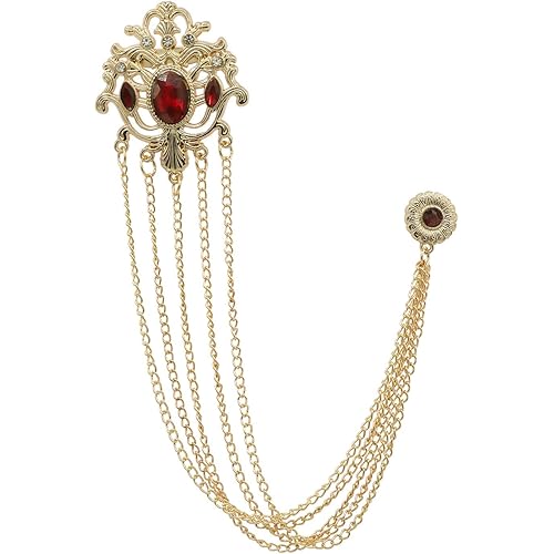 Metal : Zinc ; Stone : Rhinestone ; Stone Color : Maroon ; Size : Brooch : 4.5cm X 4.5cm ; Chain :21cm