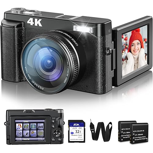 4K DIGITAL CAMERA FOR HD VLOGGING: 4K digital camera delivers anti-shake without missing all details, the video camera's pause helps save editing time and memory, and the time-lapse and slow-motion features create the creativity you want! In addition, the vlogging camera for YouTube can as a webcam, letting you easily do live streaming or video calls on YouTube, Facebook, Twitter, or other social media.